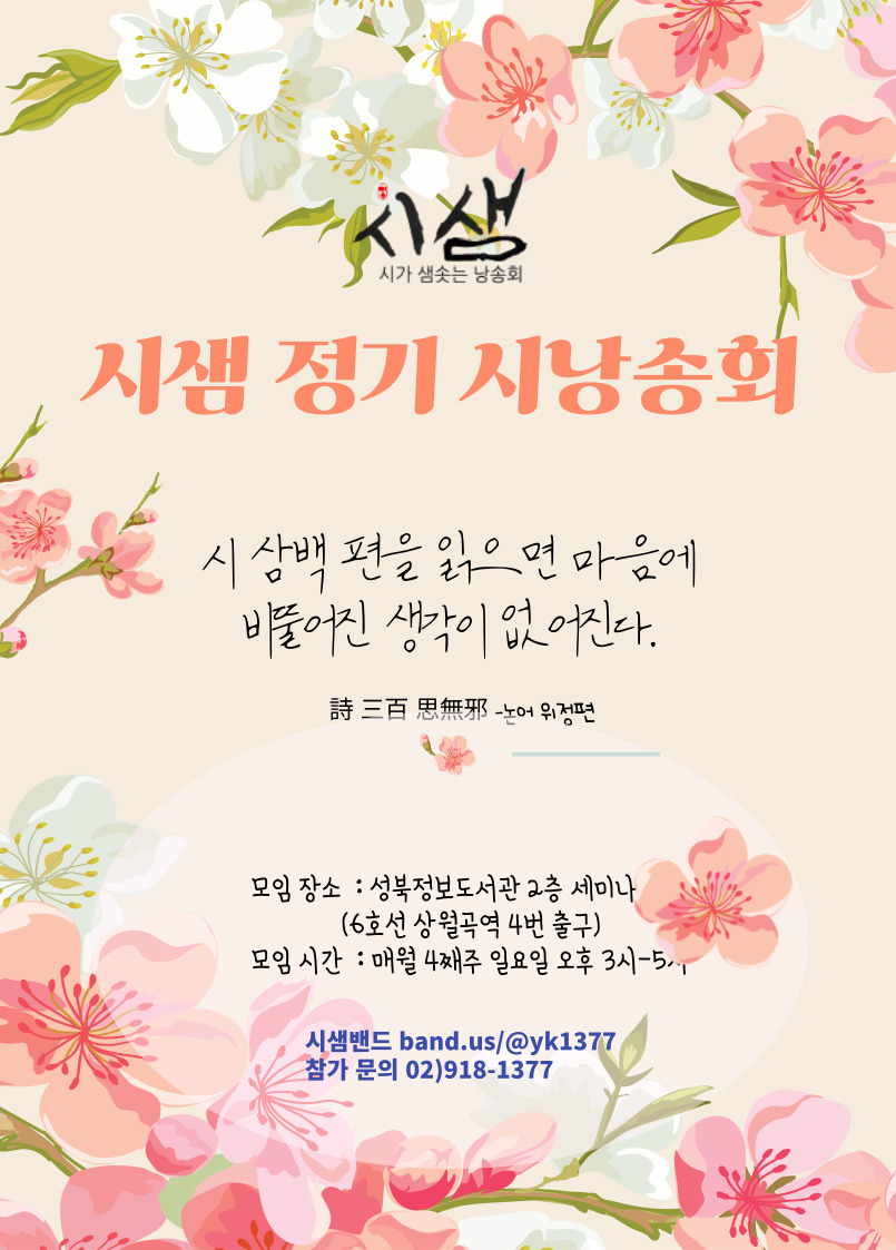 시샘 정기 시낭송 모임에 초대합니다.