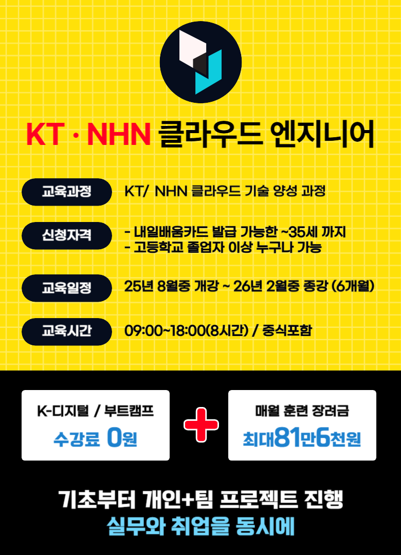 KT, NHN 클라우드 실습 포함된 교육 부트캠프 국비지원 학원