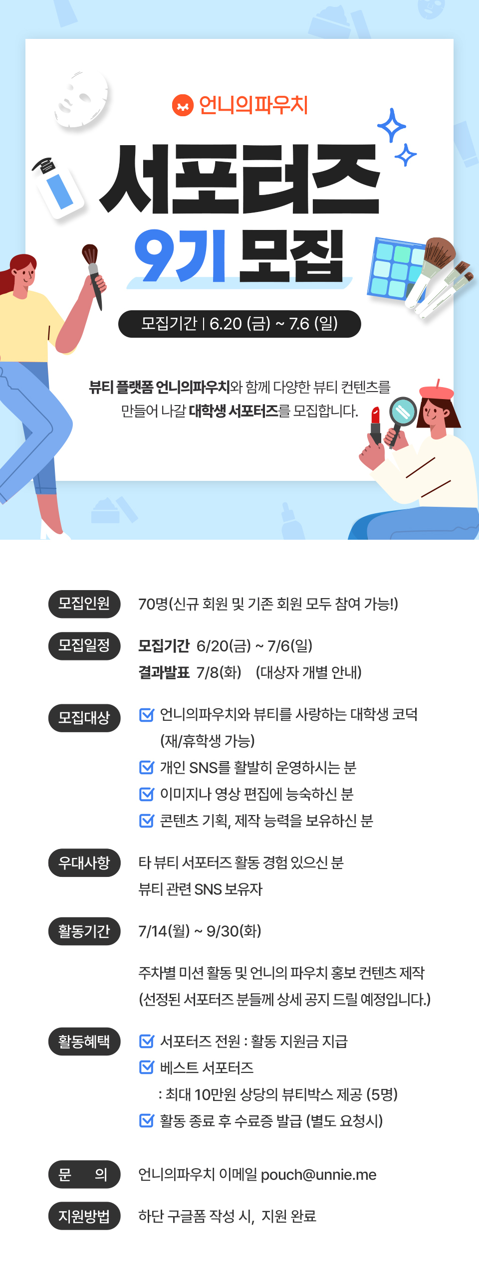 언니의파우치를 널리 알려줄 서포터즈 9기를 모집합니다!