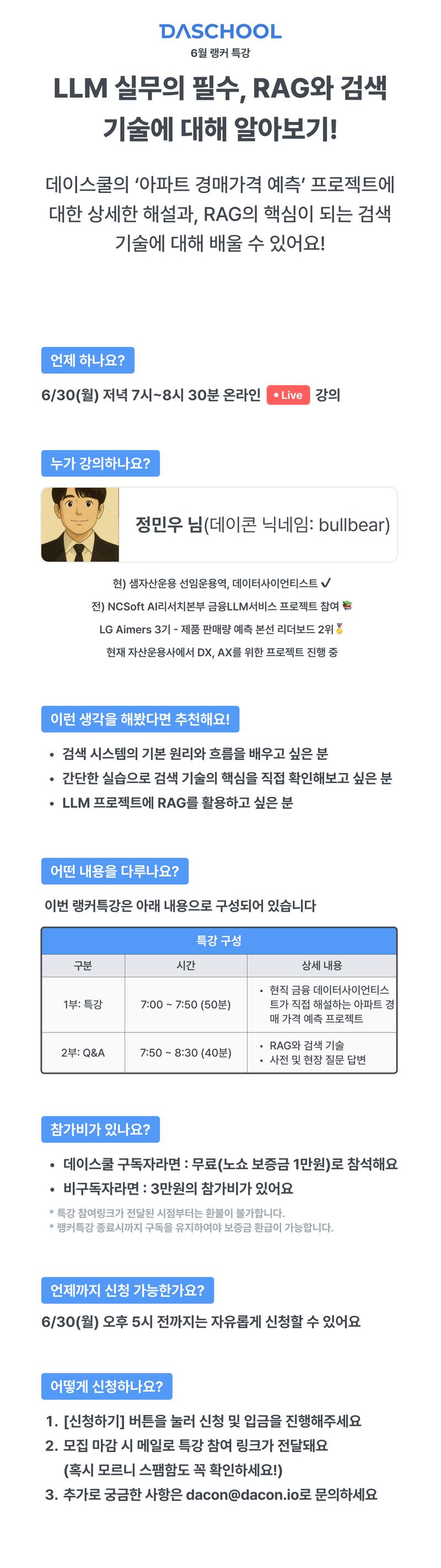 6/30(월) 오후 7시~8시 30분 온라인 Live 강의