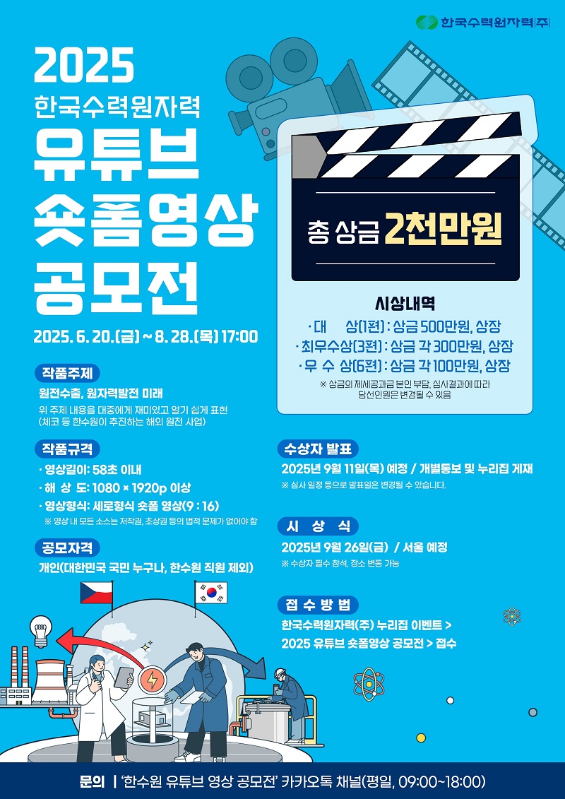 - '한수원 유튜브 영상 공모전’ 카카오톡 채널(평일, 09:00~18:00)