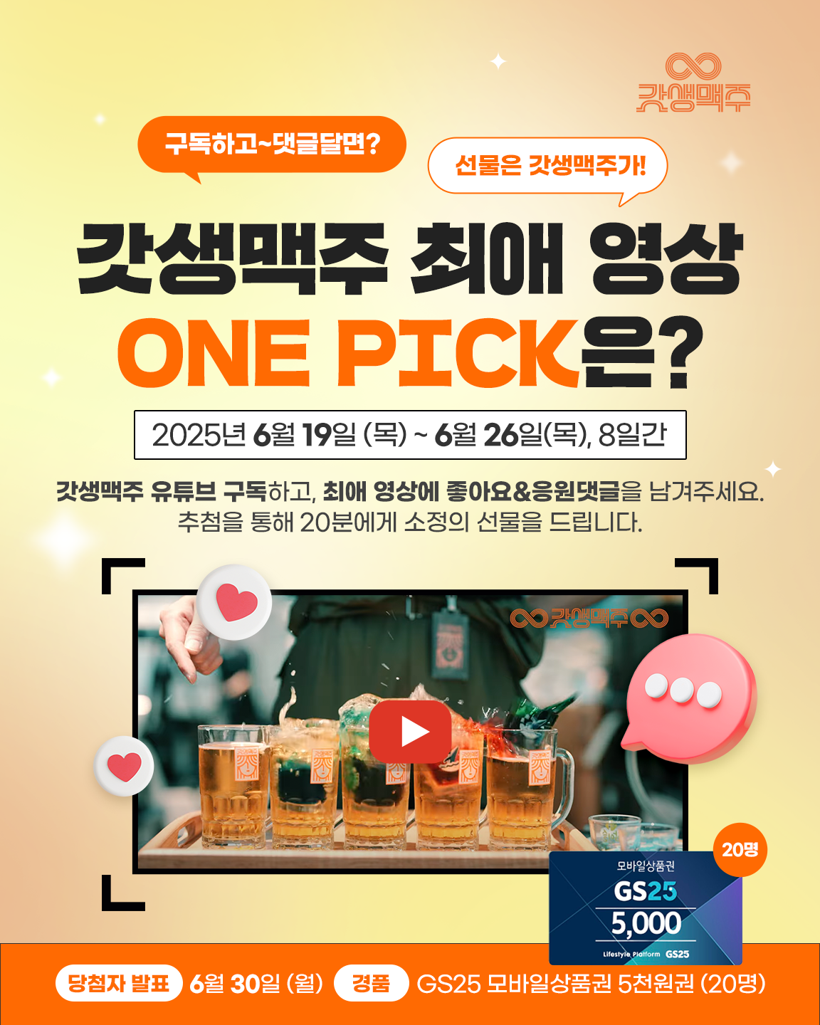 갓생맥주 구독하고 최애 영상을 알려줘! 나만의 ONE PICK 이벤트🙌🏻 (~6/26)