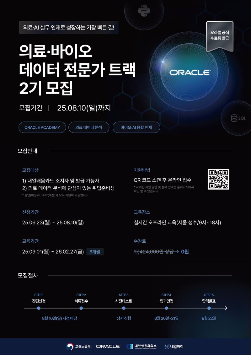 [고용노동부/오라클아카데미] 의료·바이오 데이터 전문가 트랙 2기모집