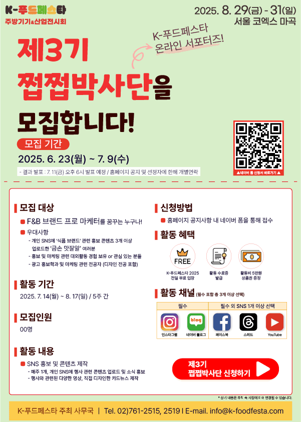 'K-푸드페스타 2025'의 온라인 서포터즈, 🥨쩝쩝박사단🥨을 모집합니다!