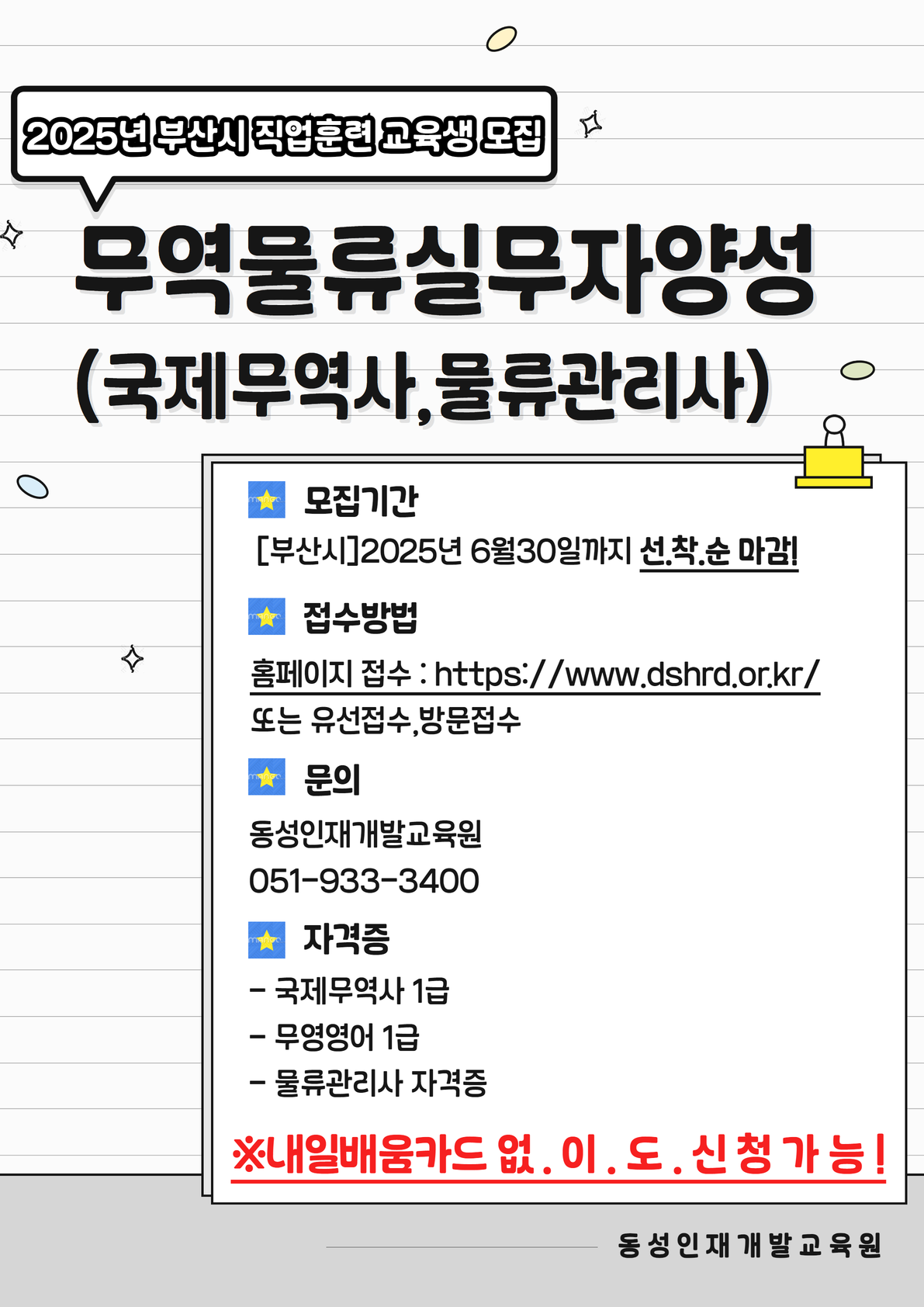 🔥 물류/무역 전국유일 프로젝트 취업연수 동성인재개발교육원!