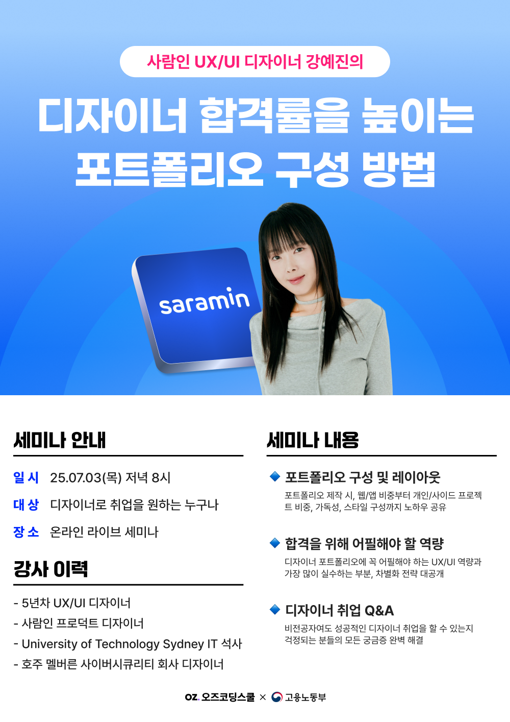 [무료] 사람인 UX/UI 디자이너의 <2025 포트폴리오 합격 전략> 세미나에 초대합니다!