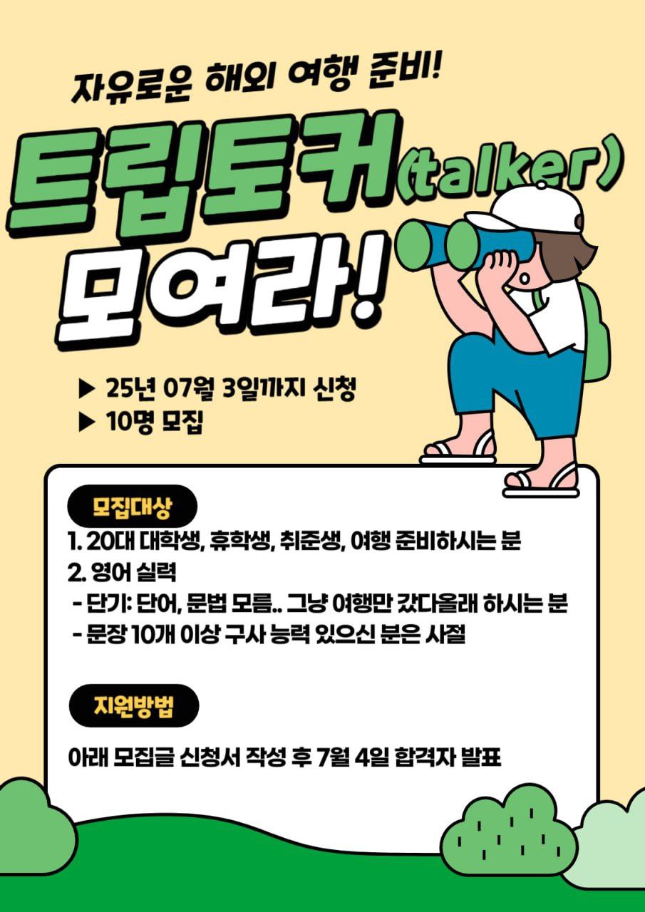 1기는 6~8월 여행시즌에 맞게 여행시 필요한 회화를 강의하고 프리토킹하는 모임을 진행하려고 합니다.