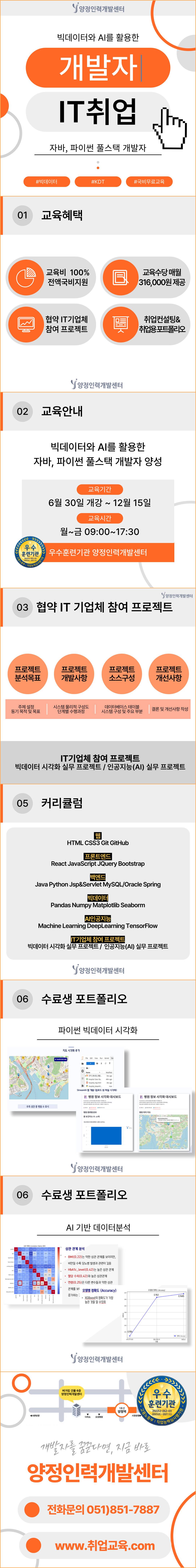 ✔️교육명 : 빅데이터, AI활용 자바, 파이썬 풀스택 개발자 양성