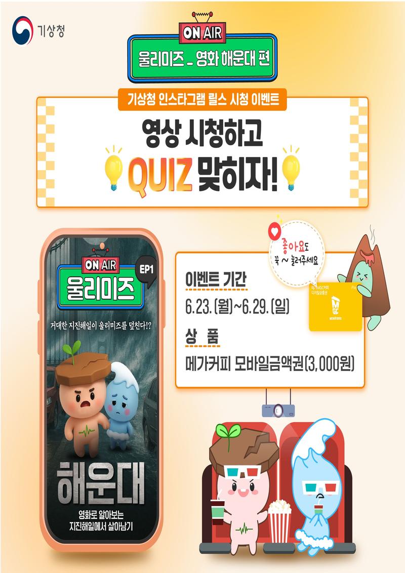 - 당첨자 발표: 7/7(월)/ 유튜브 '기상청 지진화산' 게시물 내 발표