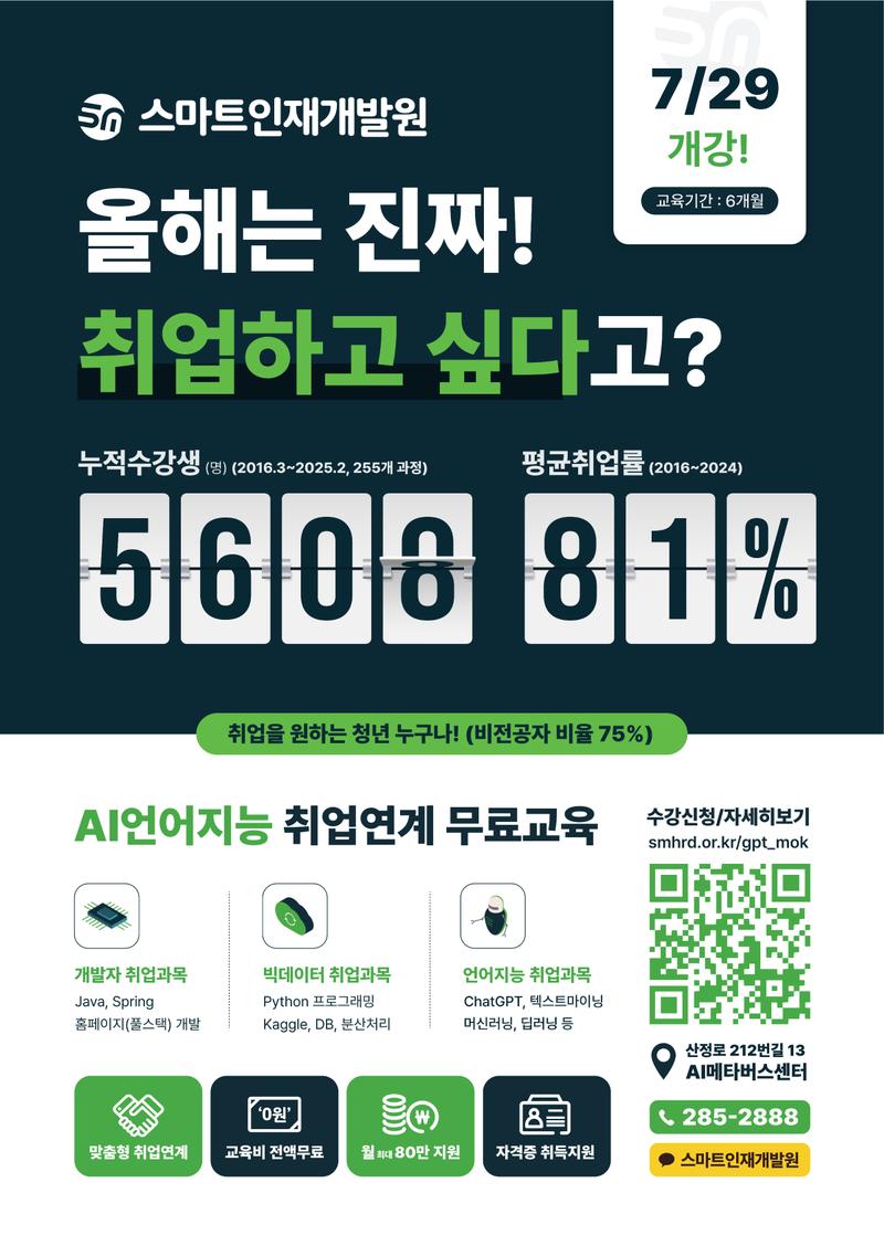 - 취업 연계 지원: 이력서·자기소개서 첨삭, 모의 면접, 기업 연계 컨설팅