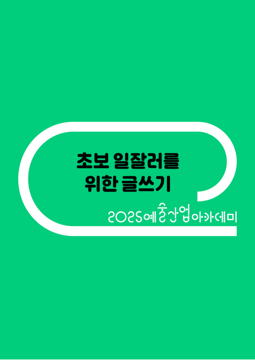 문화예술 분야의 고민을 해결할 수 있는 맞춤형 온라인 교육과정, <초보 일잘러를 위한 글쓰기>를 무료로 제공받을 [(예비)예술기업 및 단체 종사자, 혹은 예술가]를 모집합니다.