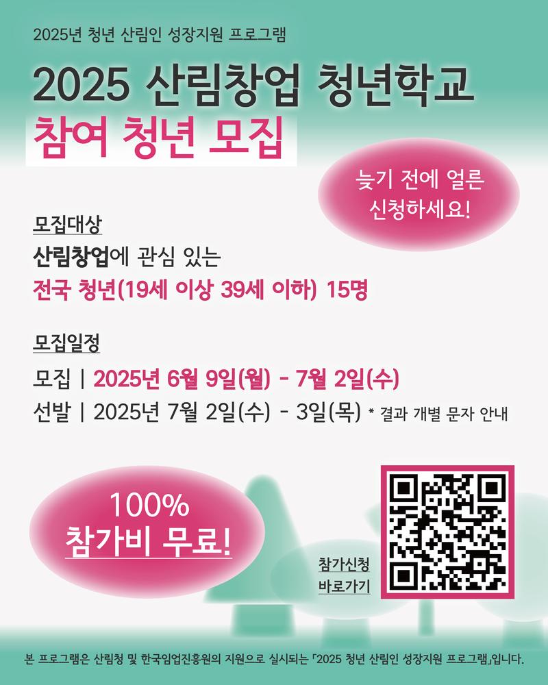 - 포스터 QR코드 및 구글 신청 폼(https://bit.ly/2025산림창업청년학교)