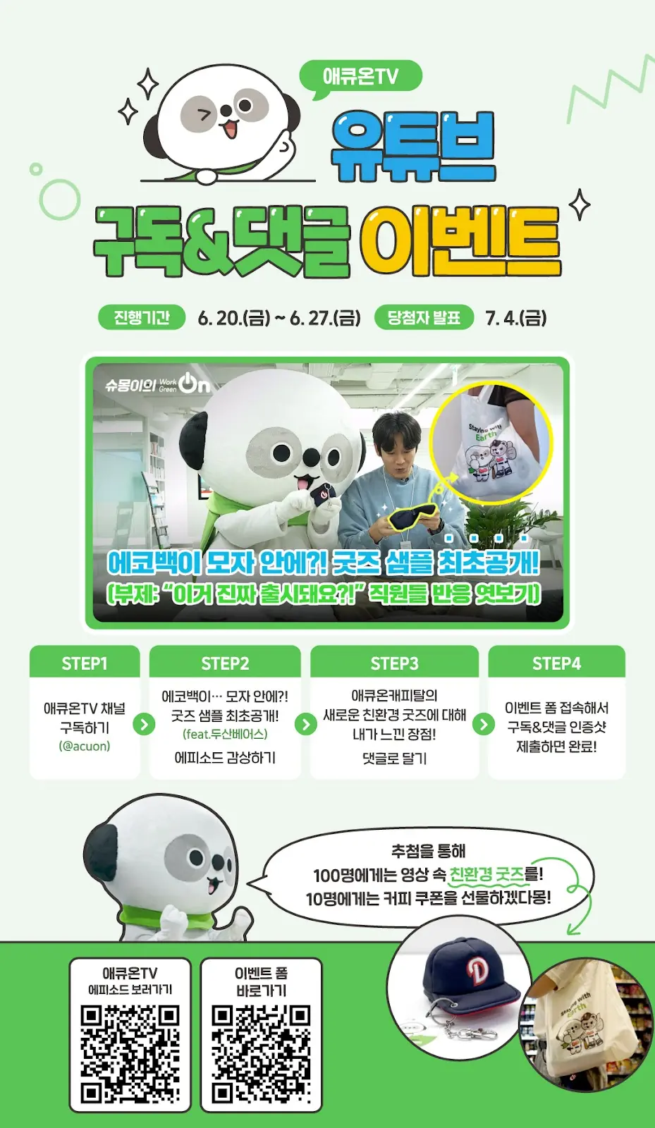 - Step 3) 이벤트 동영상에 댓글로 "애큐온 친환경 굿즈에 대한 소감" 댓글로 남기기