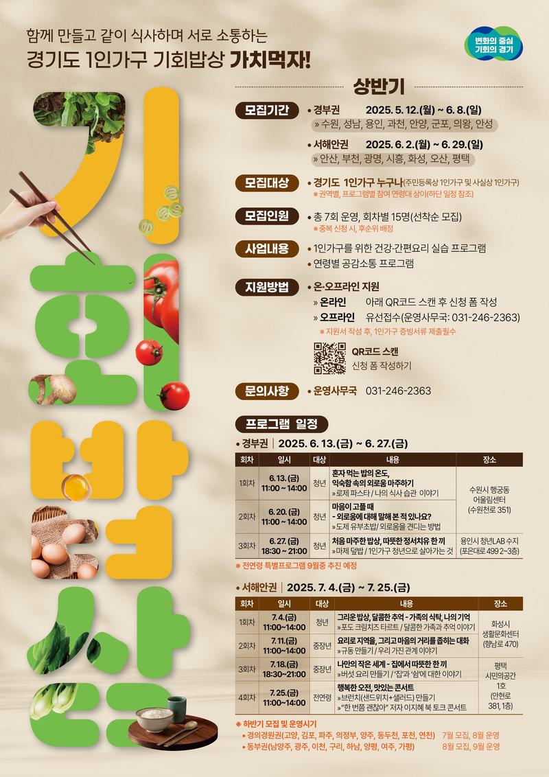 👉2025 경기도 1인가구 기회밥상 참가자 모집 안내👈