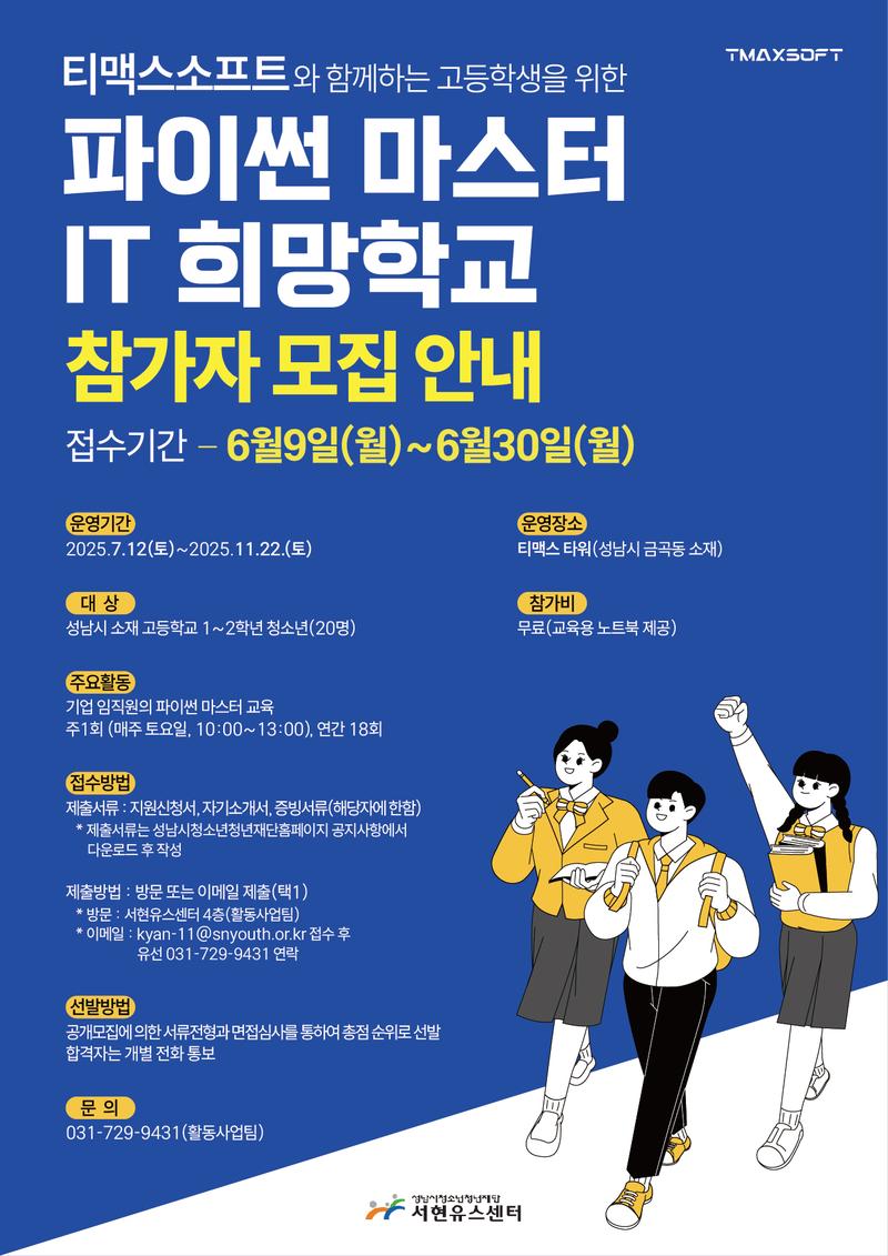 티맥스소프트와 함께하는 고등학생을 위한 파이썬마스터 [IT희망학교] 참가자 모집 안내