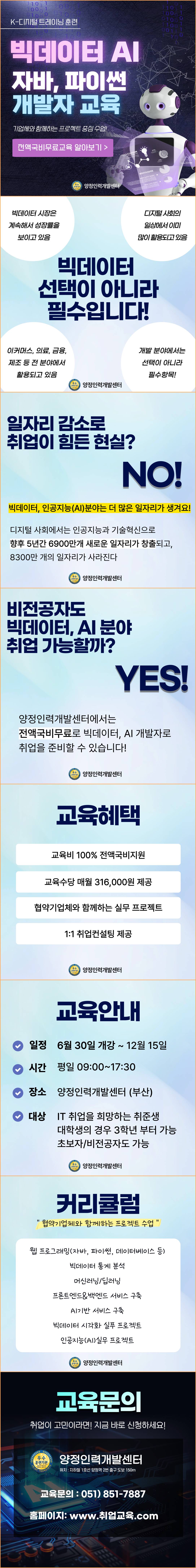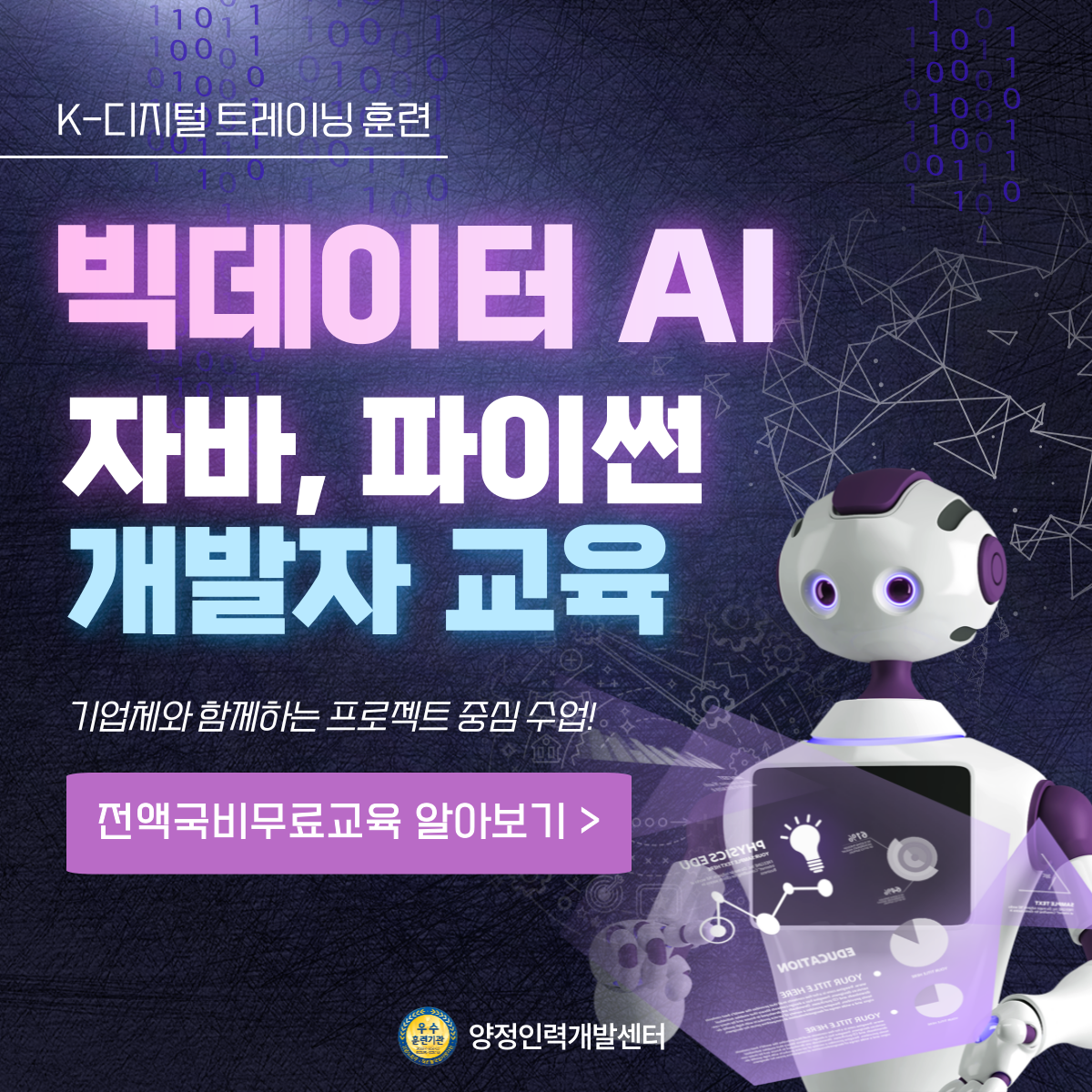 [전액국비무료]빅데이터 AI 풀스택 개발자 양성 (IT기업체 프로젝트&멘토링)