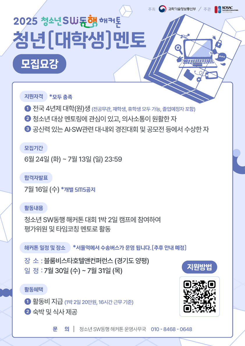 2025 청소년 SW동행 해커톤 청년(대학생)멘토를 모집합니다.