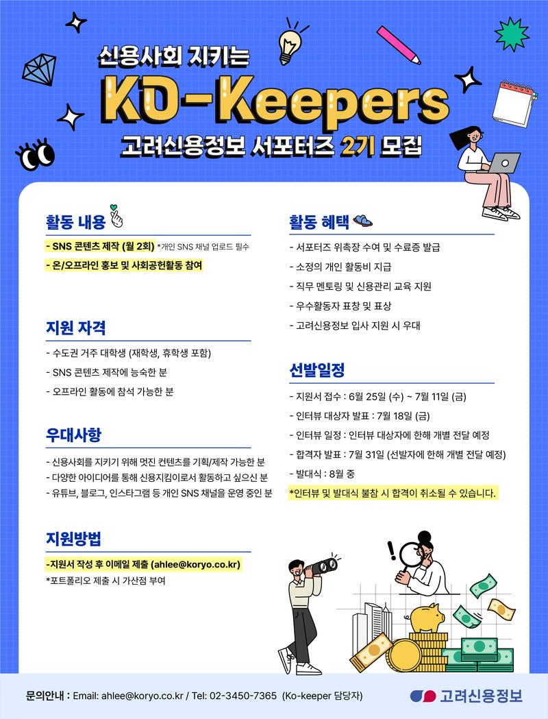 고려신용정보 대학생 서포터즈 Ko-keeper 2기를 모집합니다.