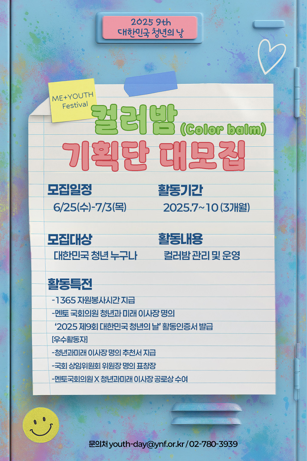 [2025 제9회 대한민국 청년의 날] 컬러밤기획단 대모집!