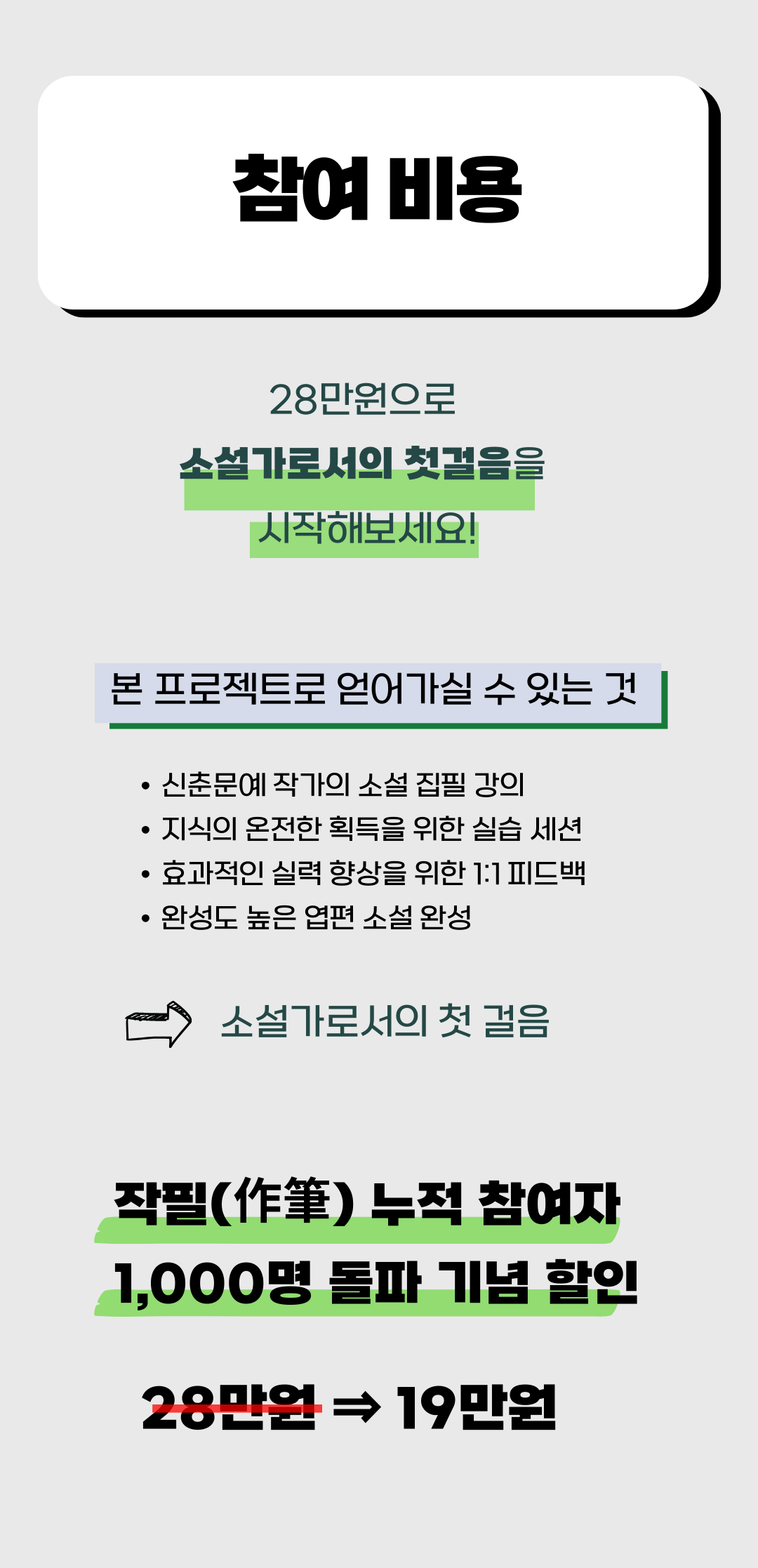 제대로 소설 쓰기를 배우고, 소설가의 첫 스텝을 밟고자 하시는 분들께 이 프로그램을 추천드립니다.