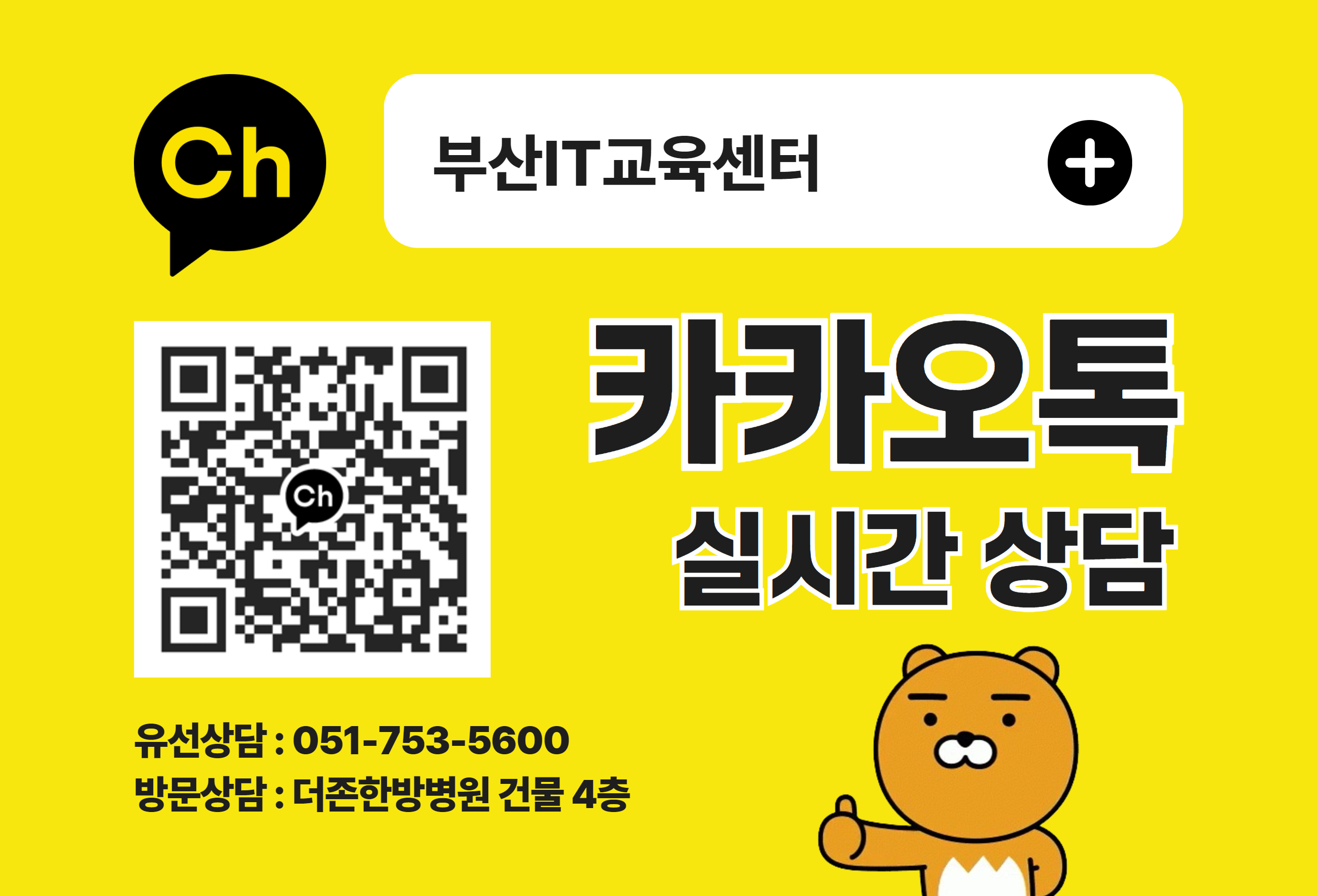 ▶ 카카오톡 채널 상담 : '부산it교육센터' 검색 (http://pf.kakao.com/_zxgltC)
