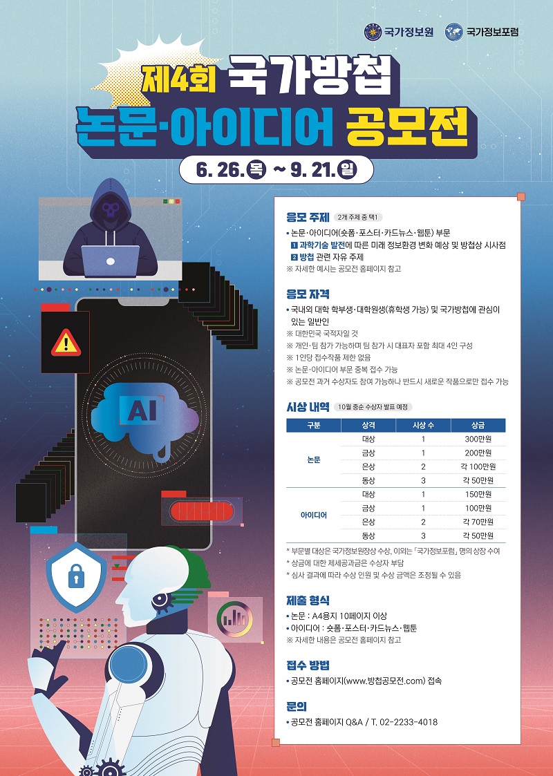 - 공모전 홈페이지(https://www.방첩공모전.com)에서 접수