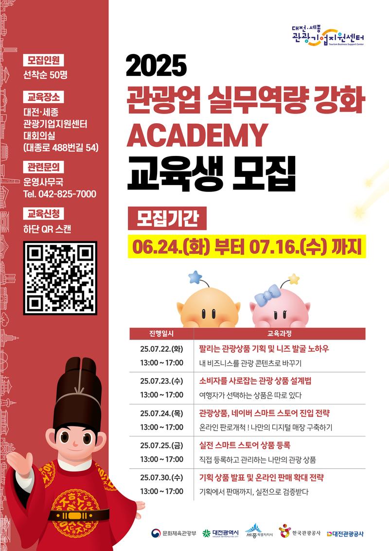 [대전관광공사] 관광업 실무역량 강화 아카데미 교육생 모집 (~7.16 까지)