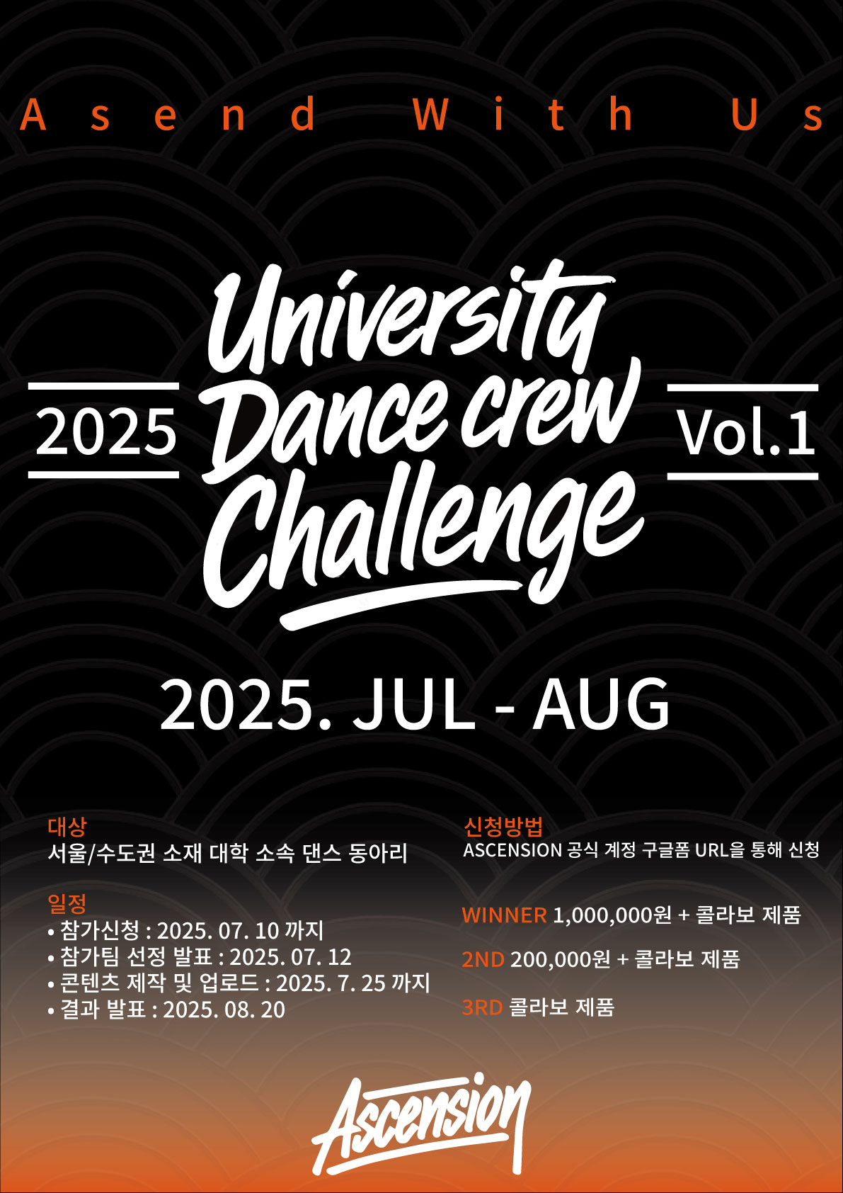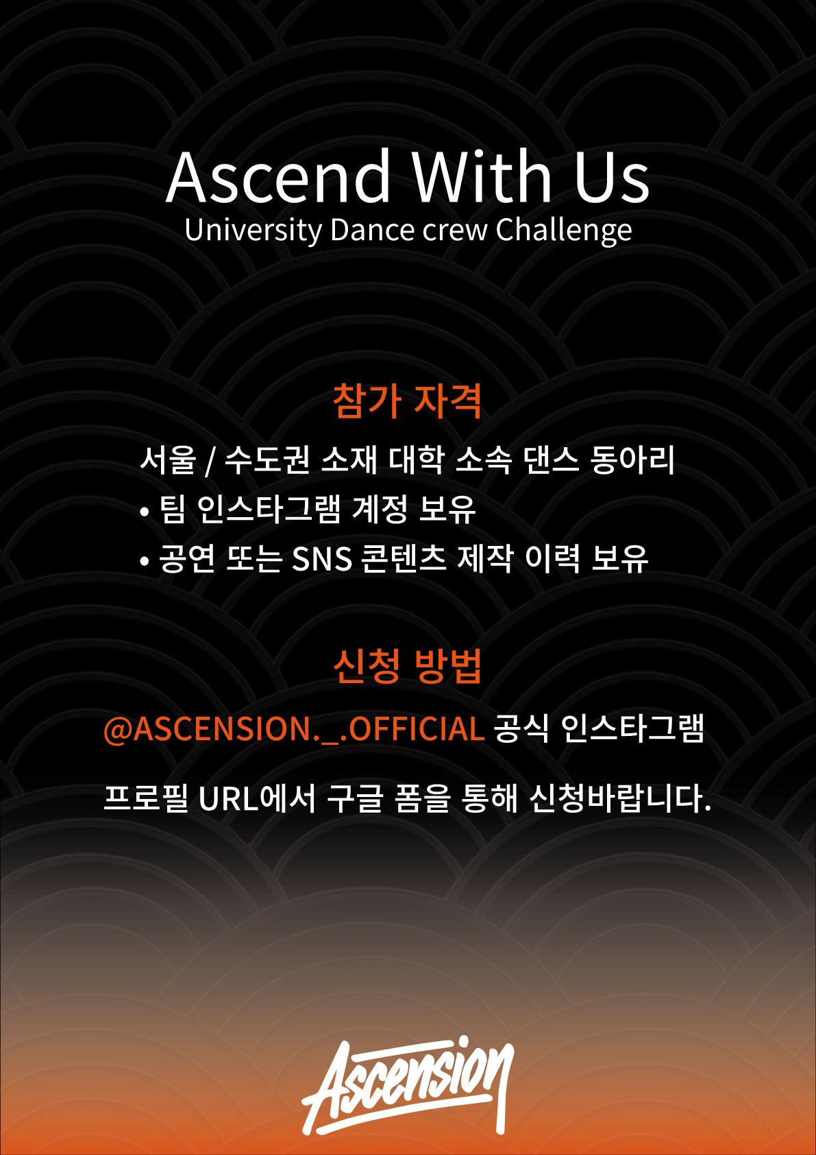 지정 해시태그 삽입 : #AscendWithUs #Ascension #어센션 #대학댄스크루챌린지 #UDC