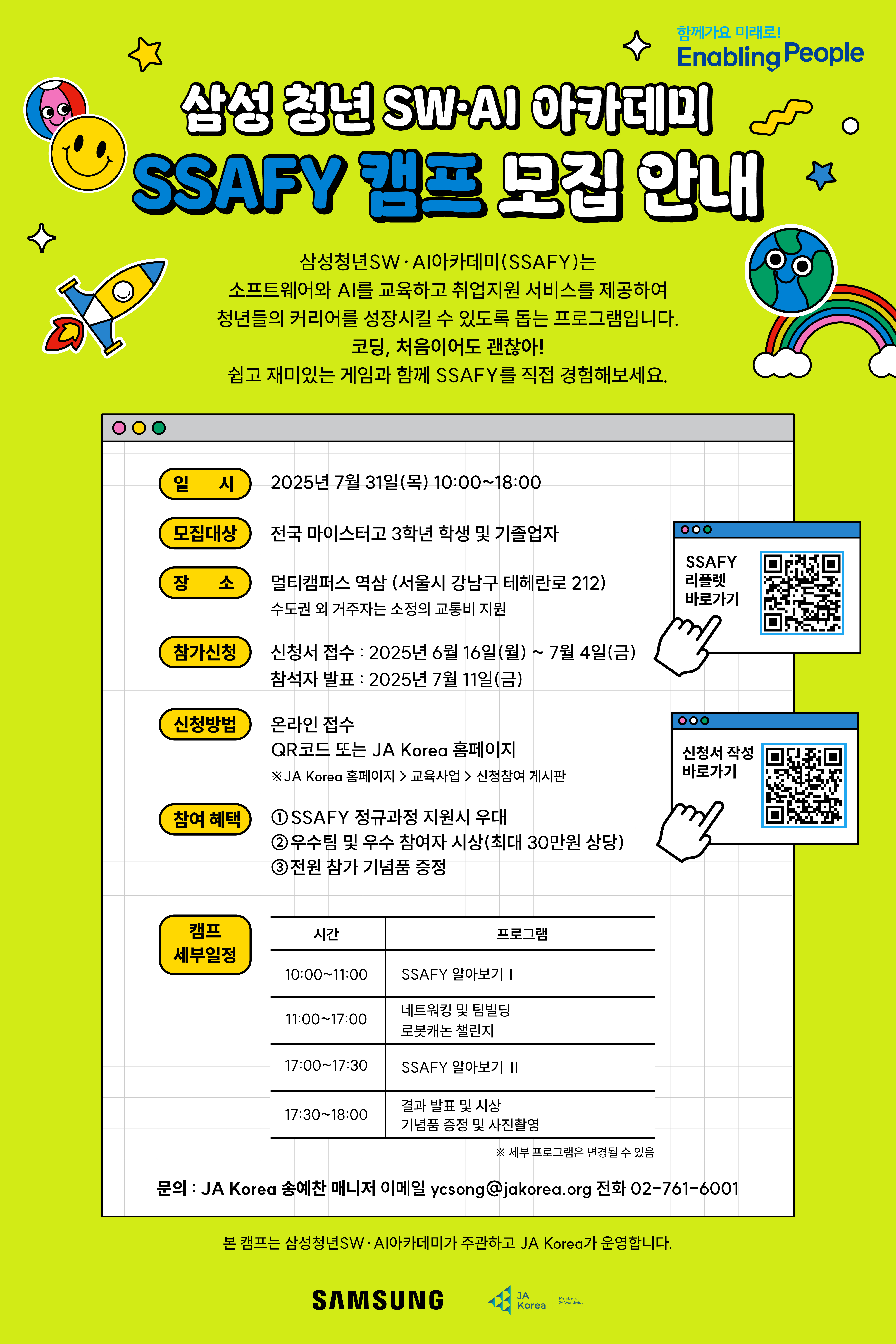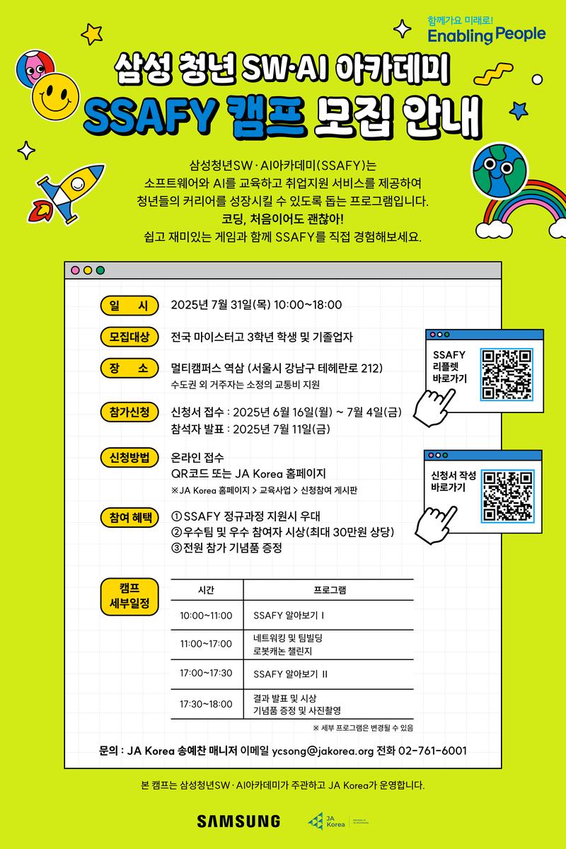 💙SAMSUNG X JA Korea 2025 삼성 청년 SW∙AI아카데미 SSAFY캠프 참가학생 모집💙