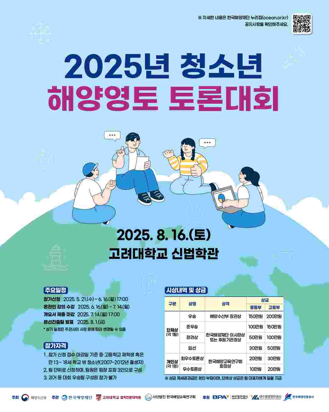 - 대상 : 2025년 청소년 해양영토 토론대회 참가 신청자 등
