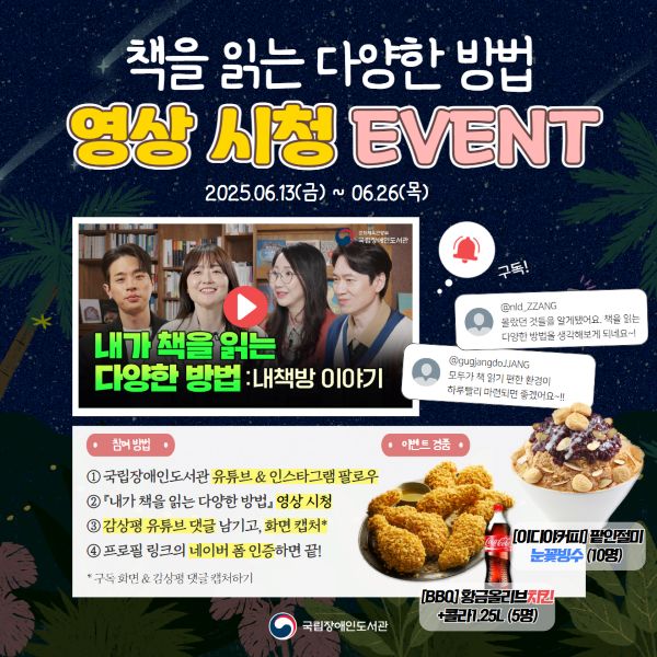 '내가 책을 읽는 다양한 방법' 영상 시청 인증 댓글 이벤트