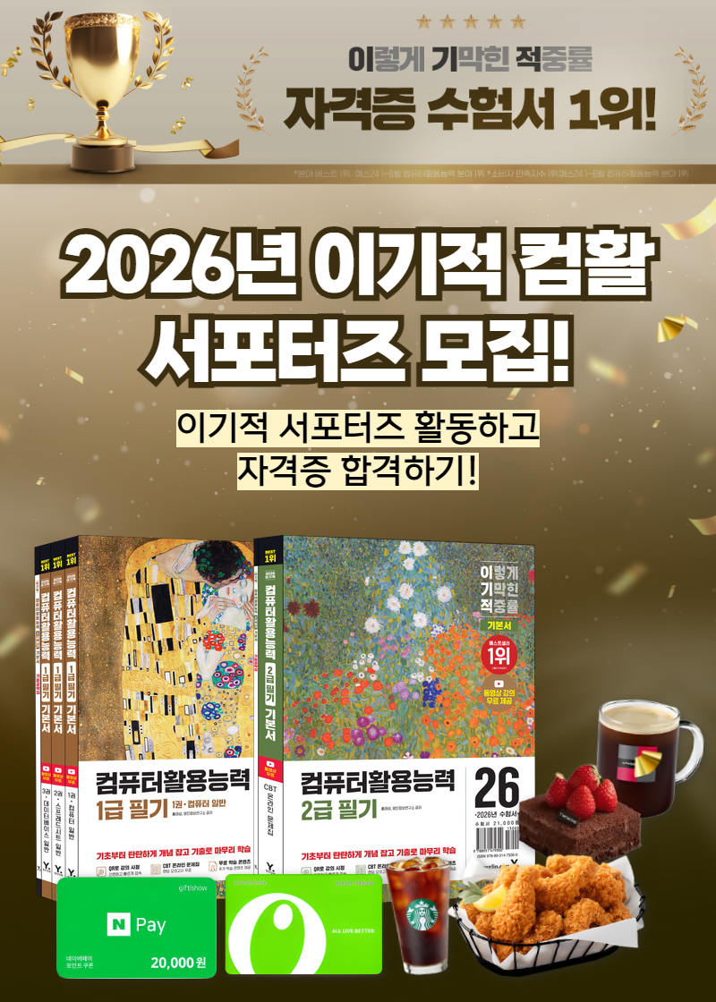 2026년 최신판 컴퓨터활용능력 1급, 2급 필기 서포터즈를 모집합니다.