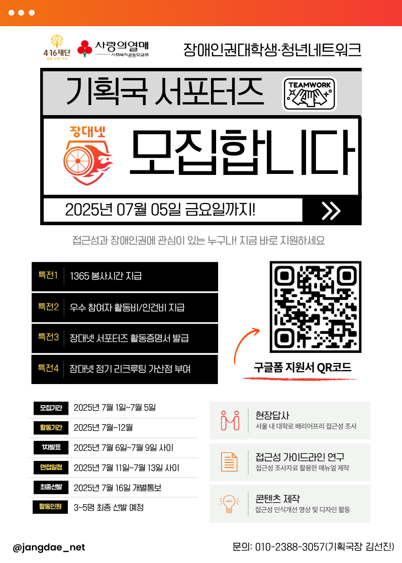 - 지원 방법: 카드뉴스 5쪽의 구글폼 QR 스캔 혹은 아래 링크로 참여
