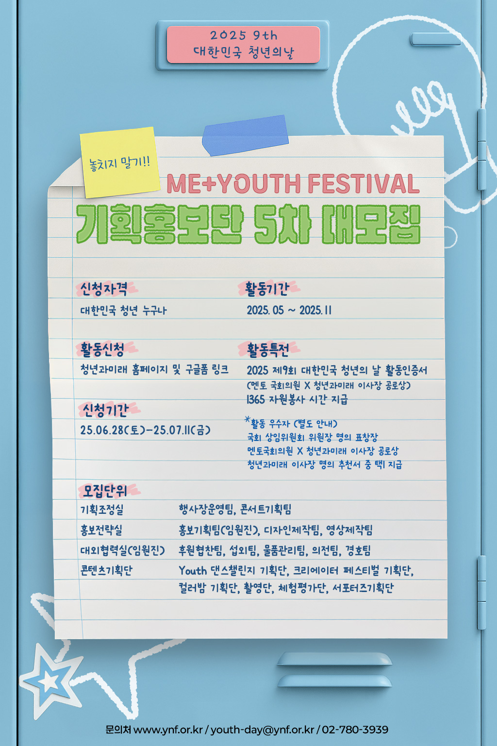[2025 제9회 대한민국 청년의 날] 기획홍보단 5차 대모집!