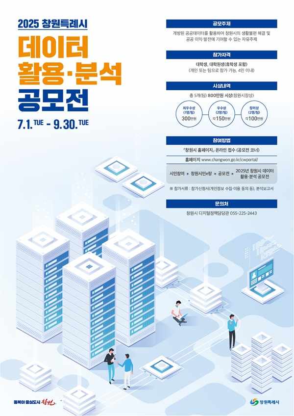 - URL주소 : https://www.changwon.go.kr/cwportal - 창원시 홈페이지 ▶시민참여 ▶창원시민e랑 ▶공모전 ▶「2025년 창원시 데이터 활용ㆍ분석 공모전」