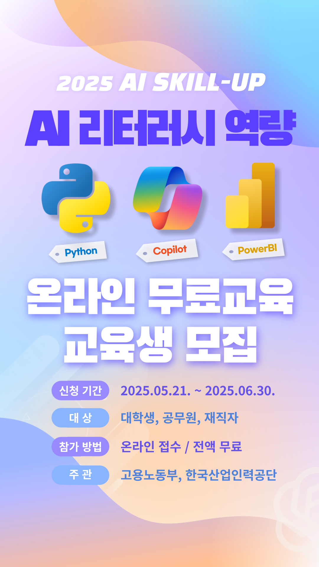 [온라인 무료교육] AI 리터러시 역량 강화! 온라인 무료교육 (Python, Copilot, PowerBI 등 다수 강좌 수강 가능)