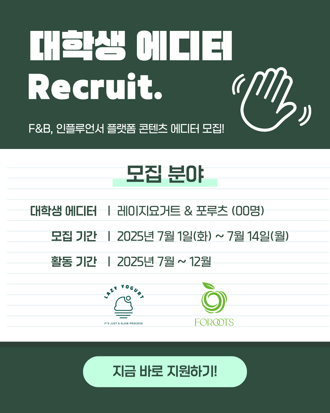 📢 [LAZY YOGURT & FOROOTS] 에디터 크루 모집 ✨