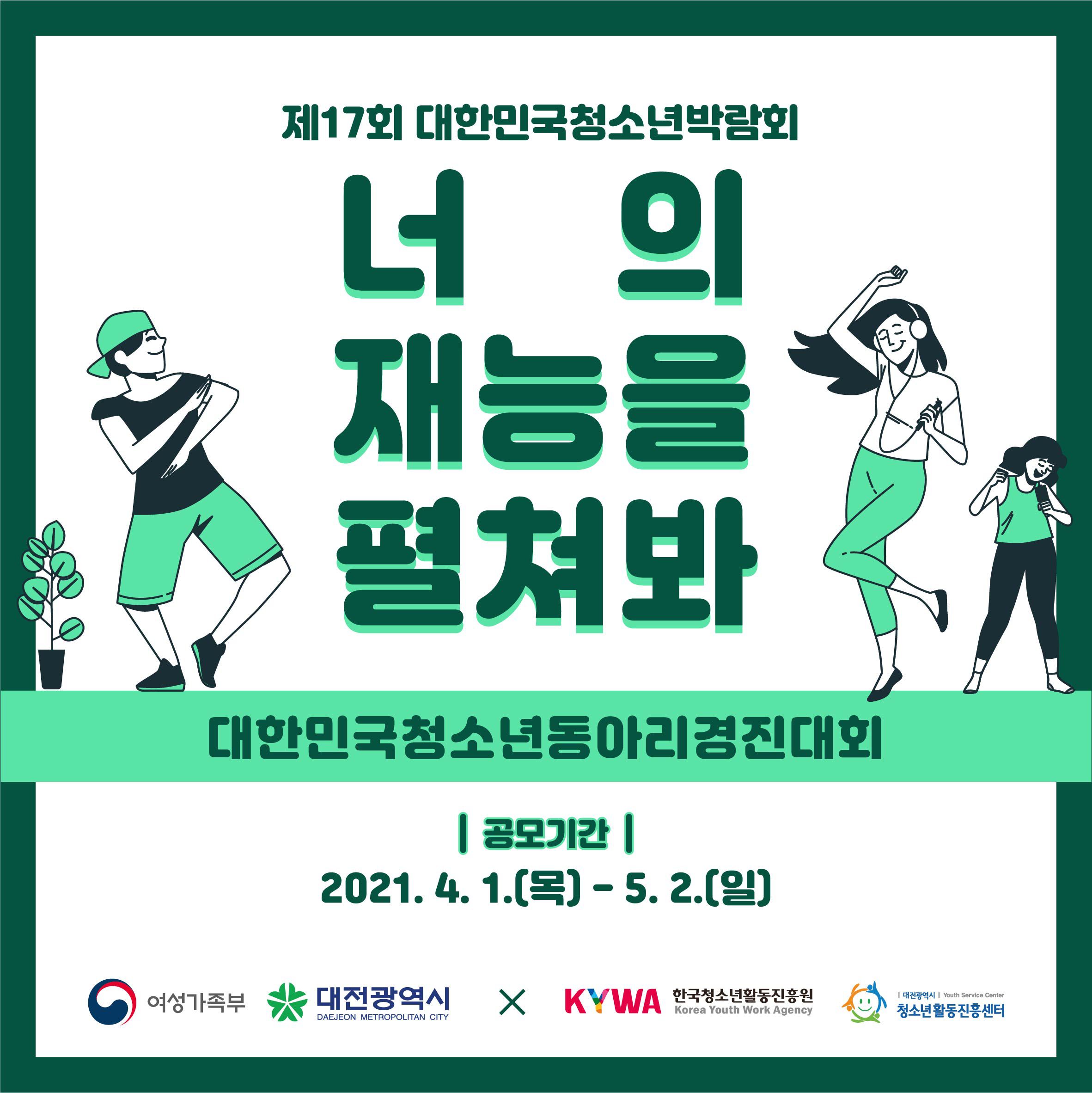 청소년동아리경진대회에 참여하여 청소년 여러분의 끼와 재능을 펼치길 바랍니다.
