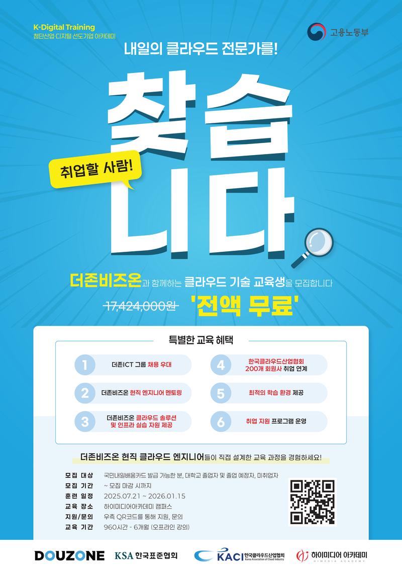 - 클라우드 기술을 기반으로 디지털 전환의 중심에서 활약할 전문가로 도약!