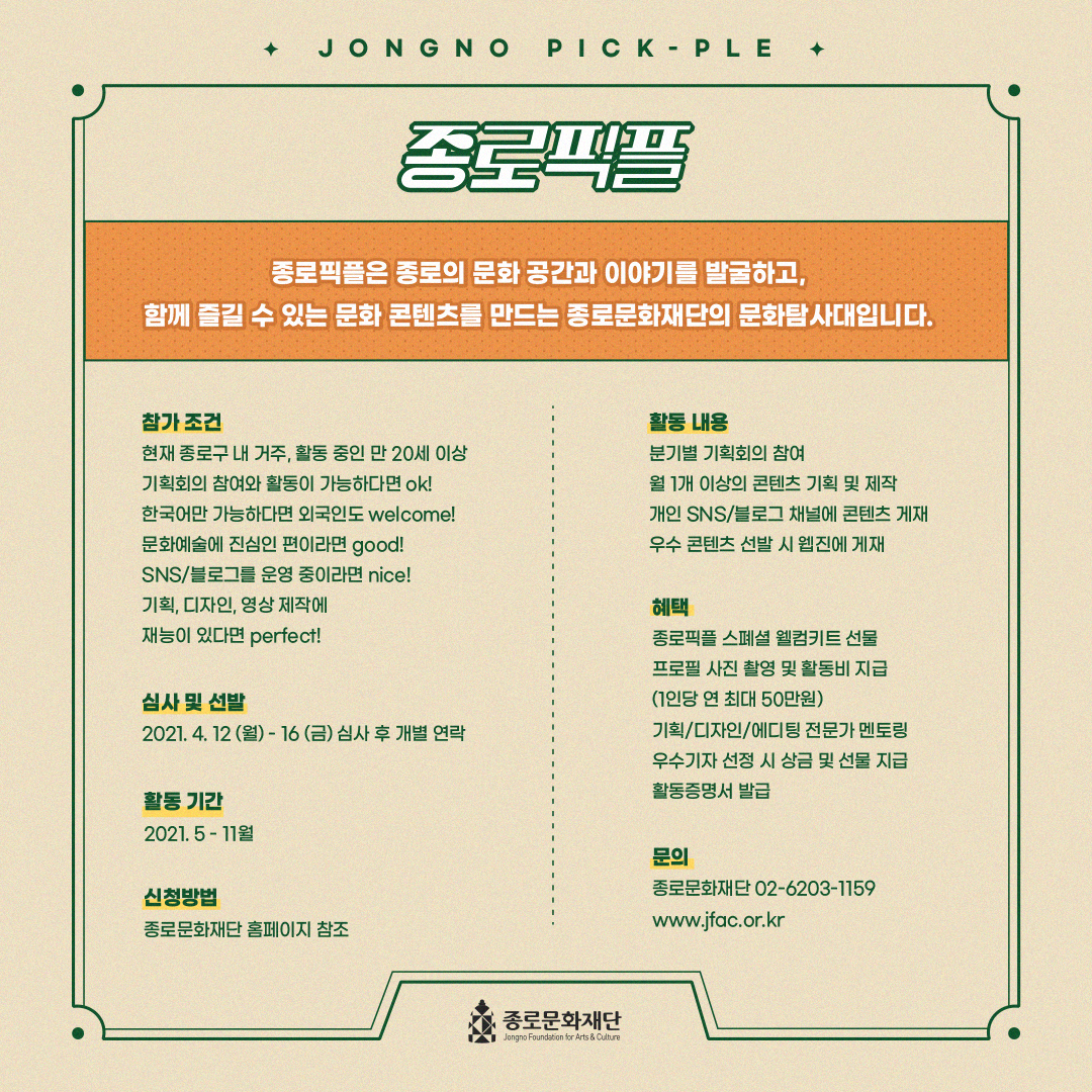 🎈신청방법 : 종로문화재단 홈페이지 참조