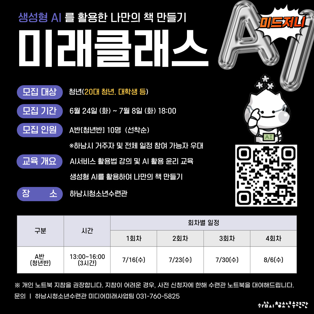 2025년 하남시청소년수련관 [미래클래스] 에서 여러분을 기다립니다.