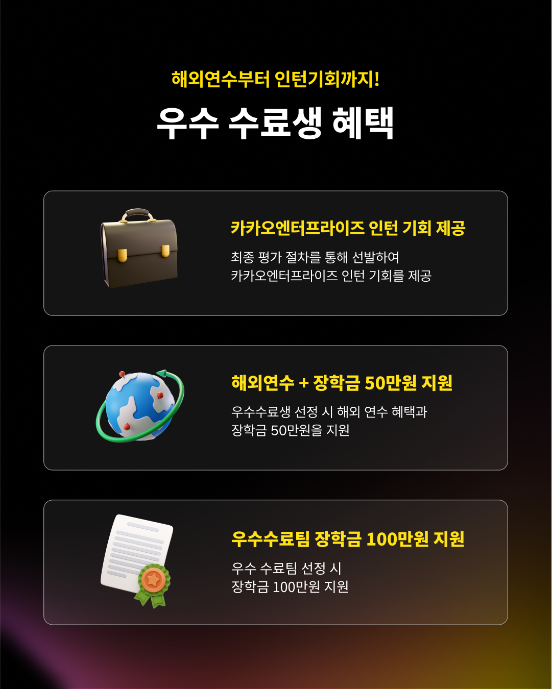 ✔️ 우수 수료팀 장학금 100만원 지원 🎓