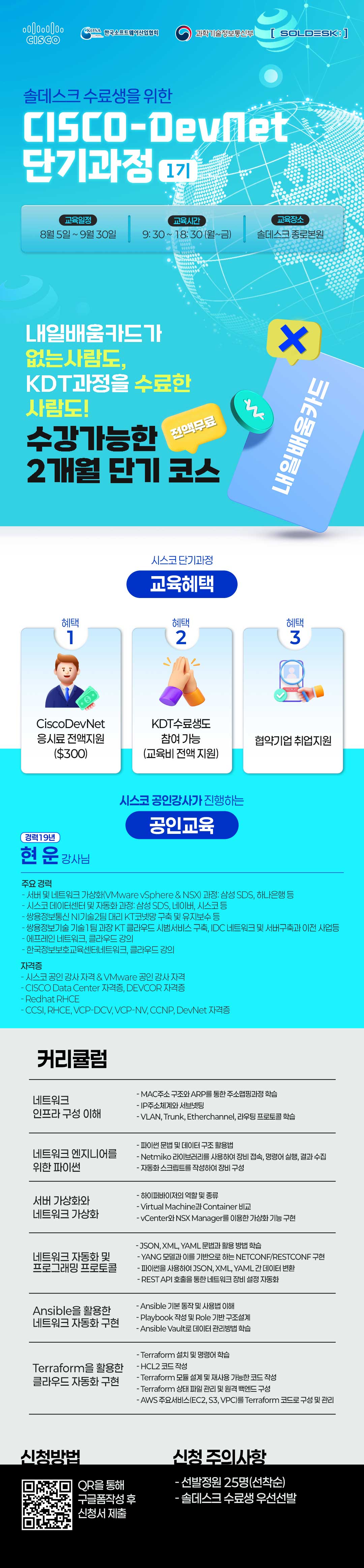 - Cisco Dev ASC 자격증 시험응시료(300달러 상당) 지원