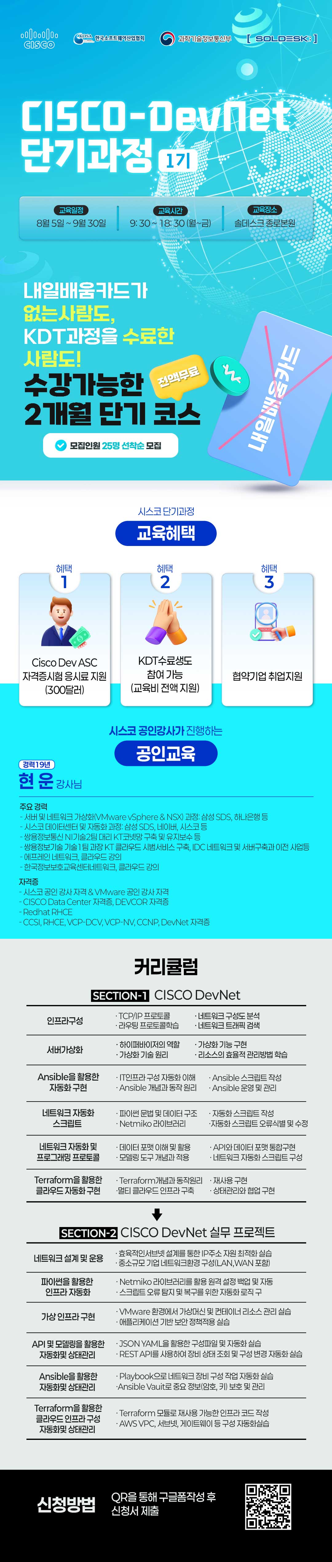 - 참여 관계사의 폭 넓은 취업 지원 (과기부/한국소프트웨어산업협회/시스코/솔데스크등)