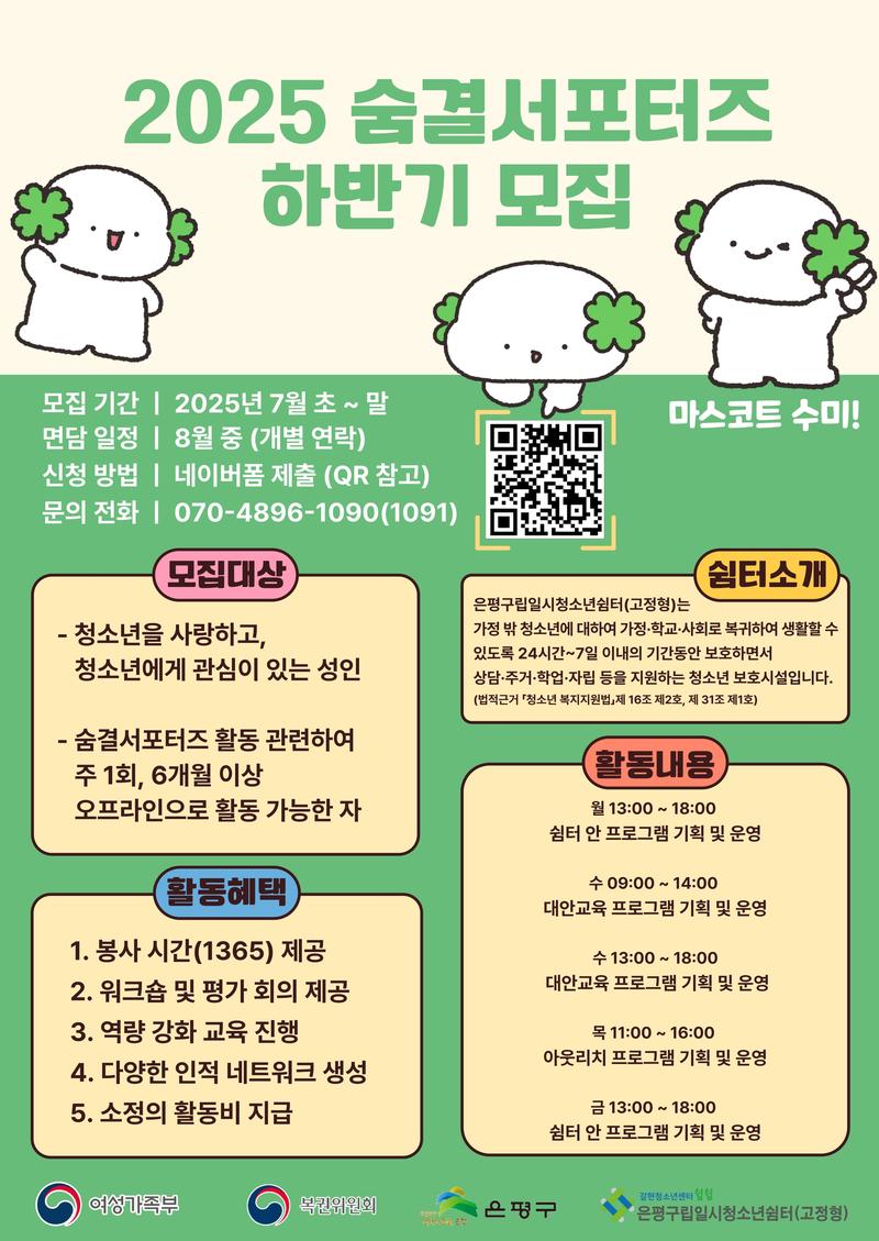 “청소년들의 쉼, 그 곁에 머물 ‘숨결’ 선생님분들을 기다립니다💚”
