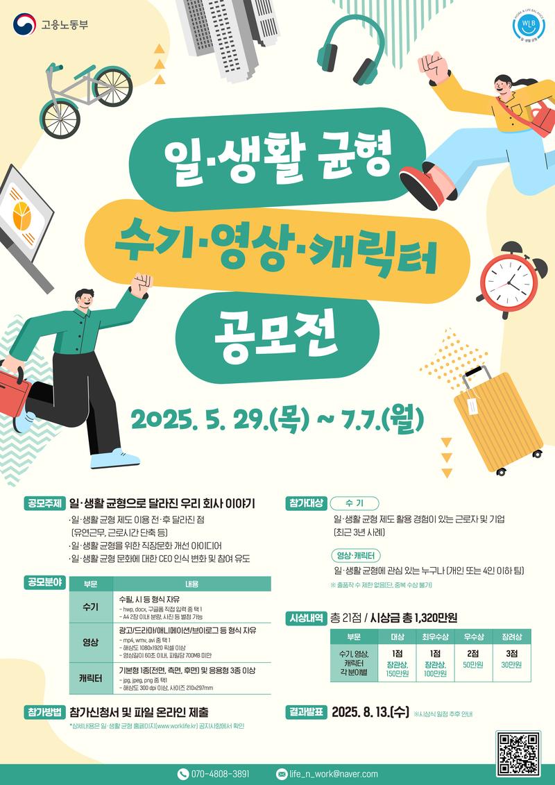2025년 일·생활 균형 수기·영상·캐릭터 공모전