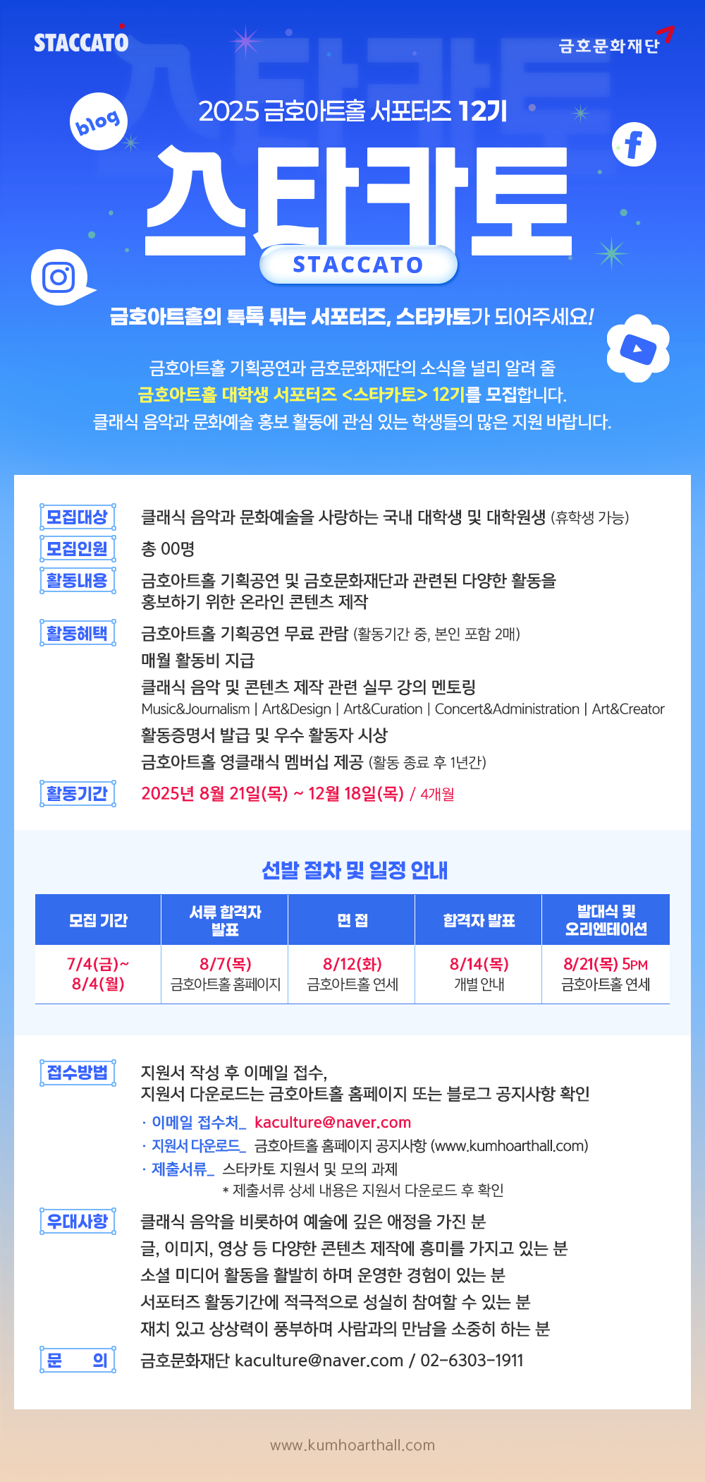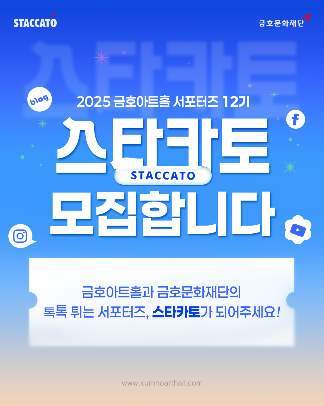 [금호문화재단] 금호아트홀 서포터즈 <스타카토> 12기 모집! (~2025/8/4)