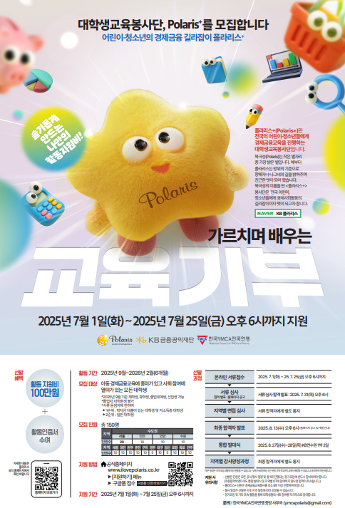KB-YMCA 대학생경제금융교육봉사단 폴라리스+ 25기 춘천지역 일정을 다음과 같이 공지합니다.