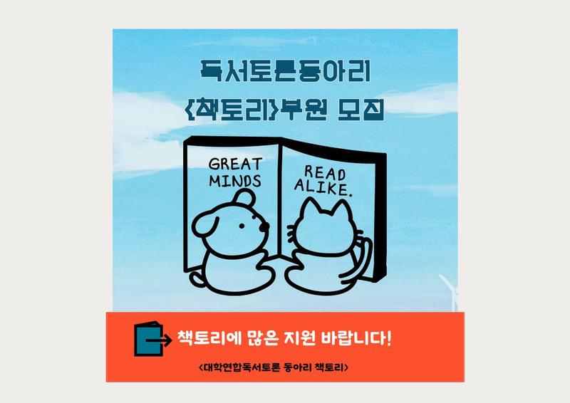 수도권 대학연합 독서토론동아리 "책토리"는 '책'과 'Story'의 합성어로,