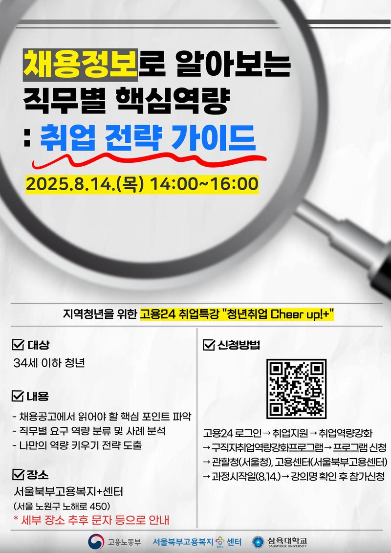 고용24 취업특강 청년취업 Cheer up!+ 8월 진행 안내 |